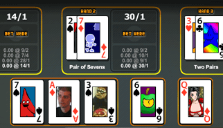 Texas Hold'Em - Il Texas Hold'em è la variante del gioco del poker più giocata nei Casinò. Si gioca con un mazzo da 52 carte francesi ma, a differenza del poker classico, i giocatori ricevono solamente due carte a testa che, per formare il punto, vanno combinate, alla fine della mano, con le cinque carte comuni a tutti che sono state scoperte dal mazziere durante le fasi di gioco. In questa rivisitazione online, dovrete puntare su uno o più giocatori che riterrete i potenziali vincitori. Ogni volta che farete una puntata, cliccando su DEAL farete avanzare il gioco di una mano, e di volta in volta, in base alle carte che verranno scoperte, potrete rifare o meno la vostra puntata. Buona giocata dunque, e che la Dea Bendata sia con voi! :-)